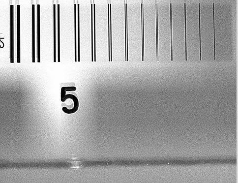 3、借助4倍放大鏡觀察雙絲像質(zhì)計(jì)影像,最大線對(duì),其影像正好是兩雙線間距可以識(shí)別極限下的兩獨(dú)立線過渡到單線的影像,此時(shí)被認(rèn)為是可辨別的極限值。簡單點(diǎn)說,就是觀測(cè)雙絲像質(zhì)計(jì)所生成的影像時(shí),能觀測(cè)到的清晰的雙線越多越好,越細(xì)越好。