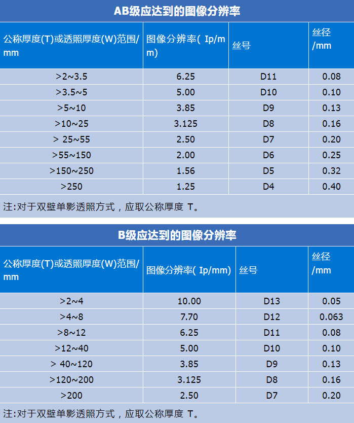 對(duì)應(yīng)的圖像分辨率要求(國標(biāo))在數(shù)字成像圖像分辨率分析中,通常采用“雙絲像質(zhì)計(jì)”進(jìn)行檢測(cè),國標(biāo)要求如下表所示: