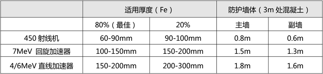 設(shè)備體積小、重量輕,為直線加速器的 1/4,輻射器重量?jī)H 100kg,位置擺放便捷,透照較大工件,運(yùn)動(dòng)靈活。由于不需要直線加速器所配置的行車和軛架,雖然防護(hù)墻厚度與直線加速器基本相等(1.5m.,防護(hù)室的高度、面積可大大縮小,防護(hù)室建設(shè)成本為直線加速器的 50%。調(diào)制器部分以風(fēng)冷替代水冷,降低故障環(huán)節(jié),受環(huán)境影響較小。